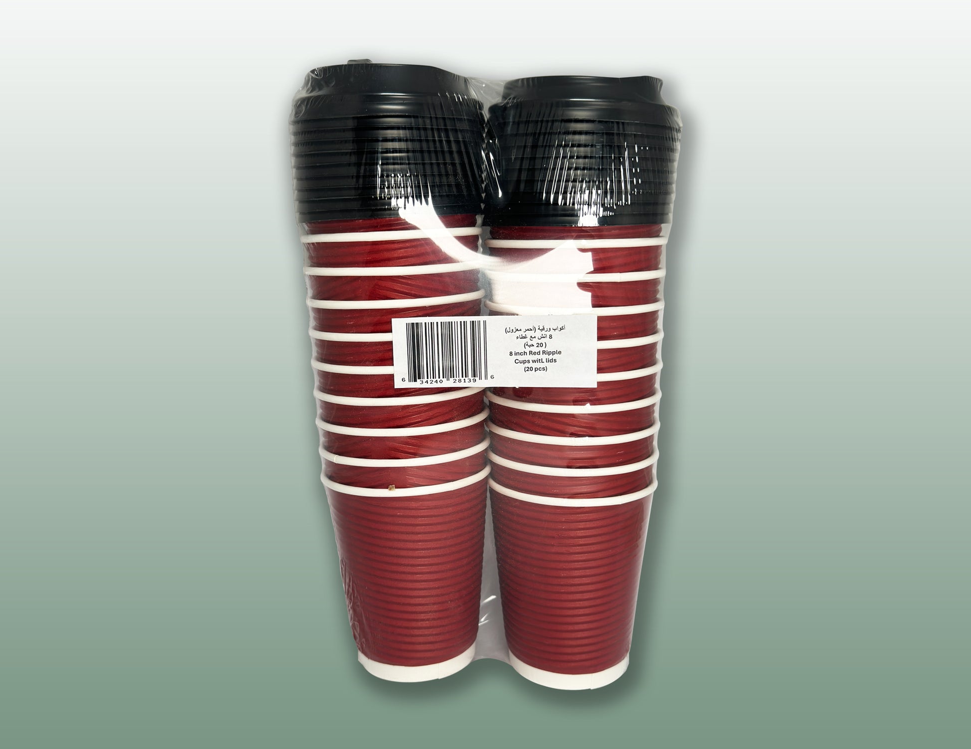 كوب ورقي مموج 8 أونصة (20 كوب مع الأغطية)
